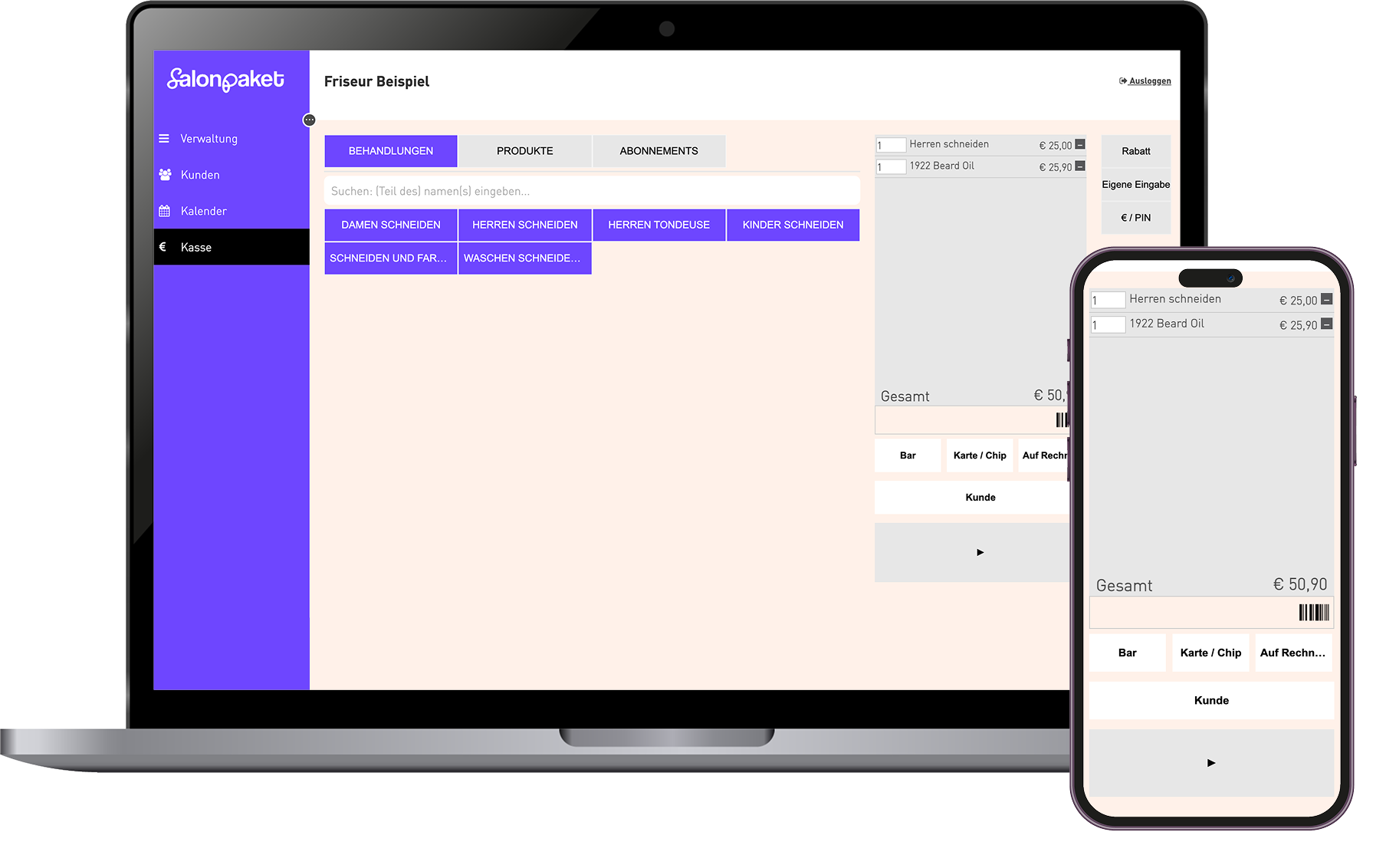 Die SalonPaket-Kasse sorgt für Überblick und Sicherheit in deiner Verwaltung. Jede Zahlung wird automatisch verarbeitet und mit deinen Kunden- und Lagerdaten verknüpft.